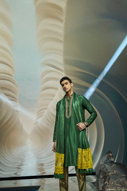 Day 5: Green – Green Silk Kurta and Dupatta Set with Embroidery