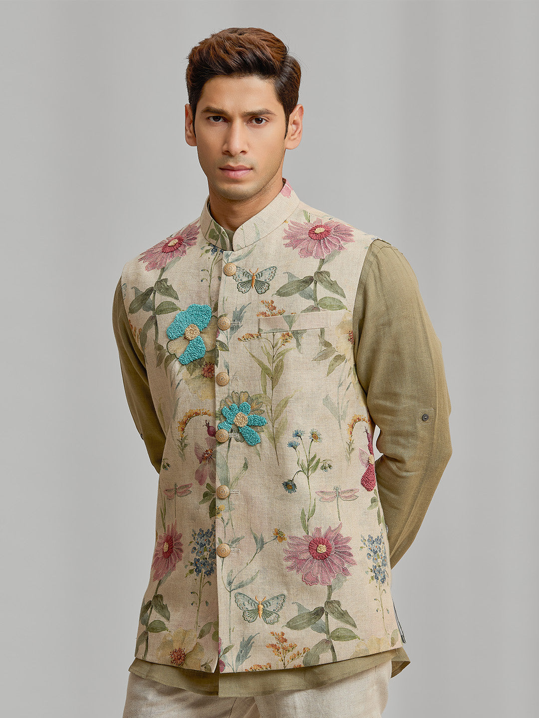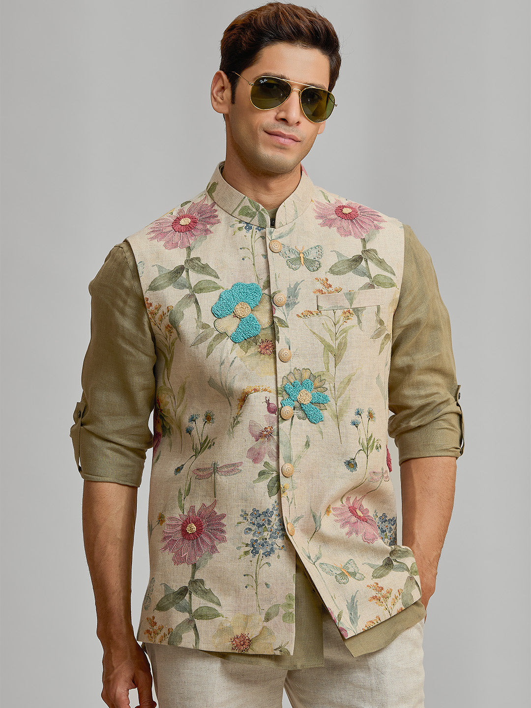 Men’s Natural Linen Bandi Shirt in Regular Fit