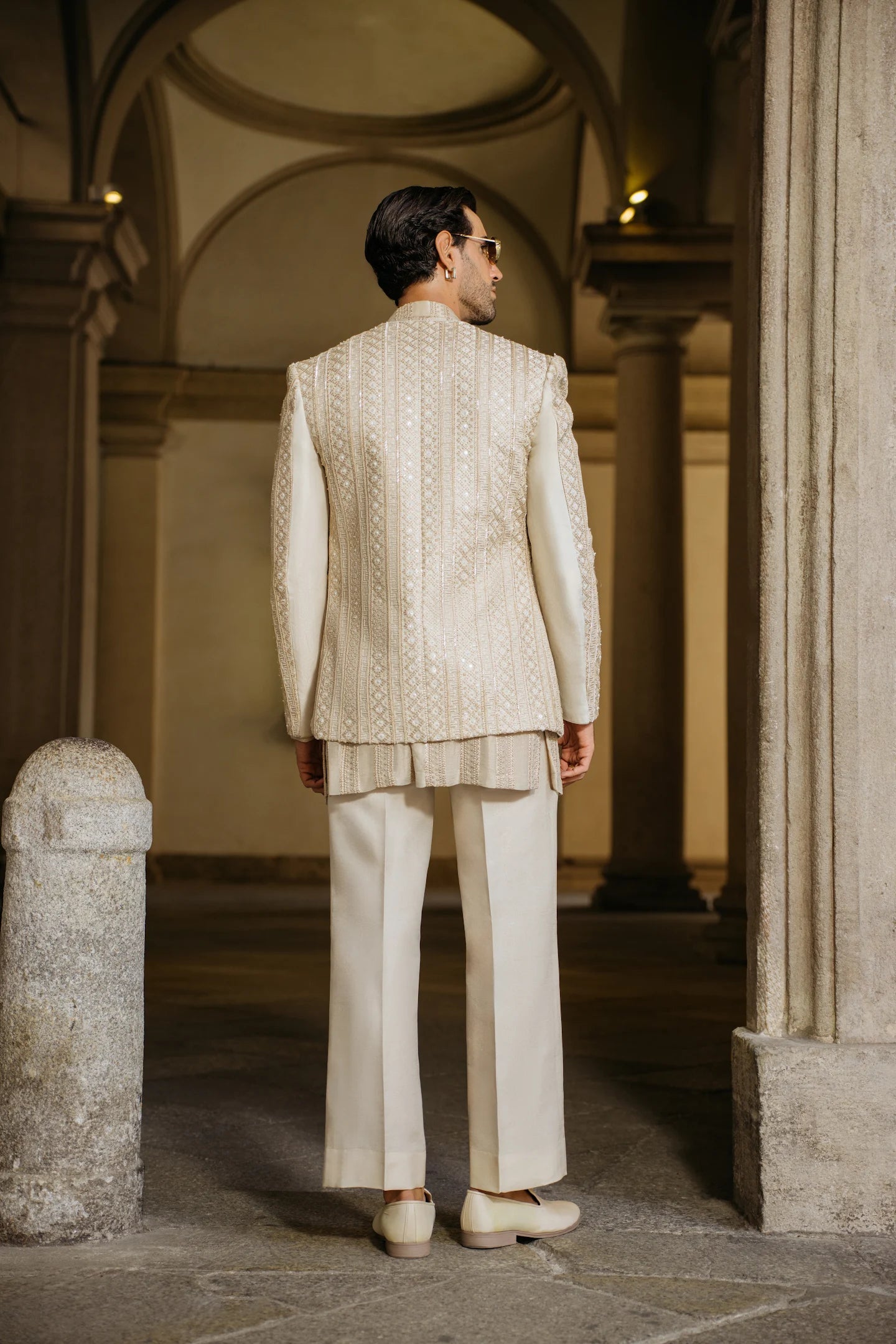 Look graceful in this Beige Indo Western Set, a perfect blend of modern design and traditional elegance.