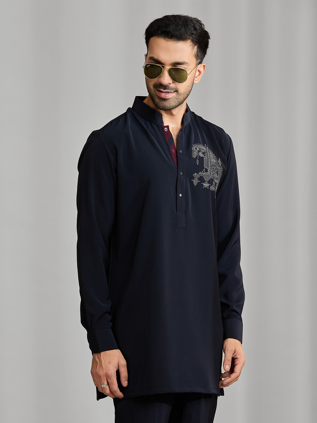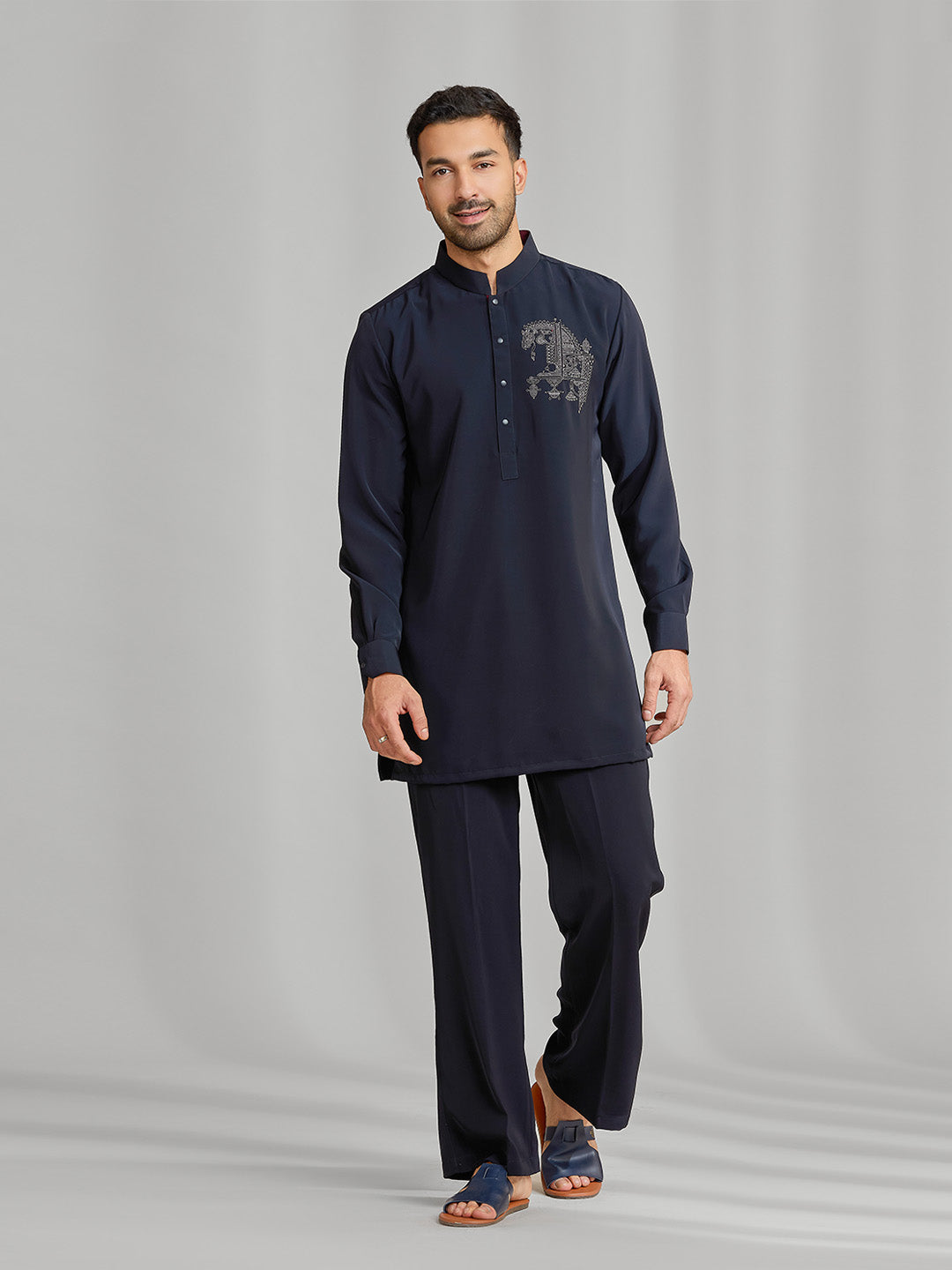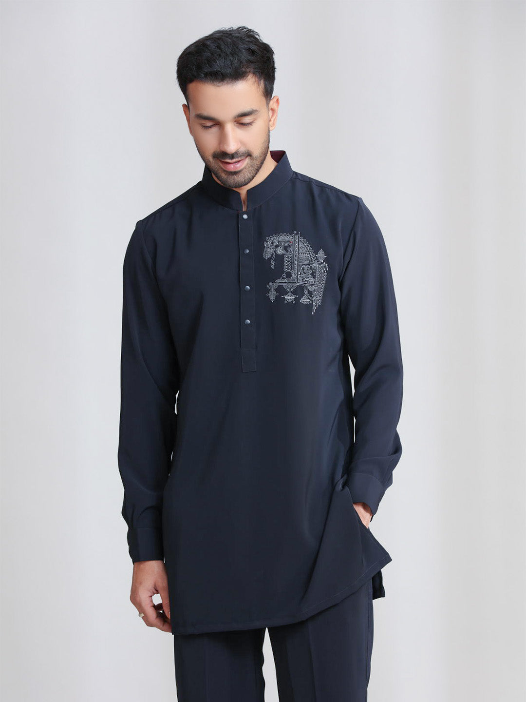 Black Silk Motif Kurta Set