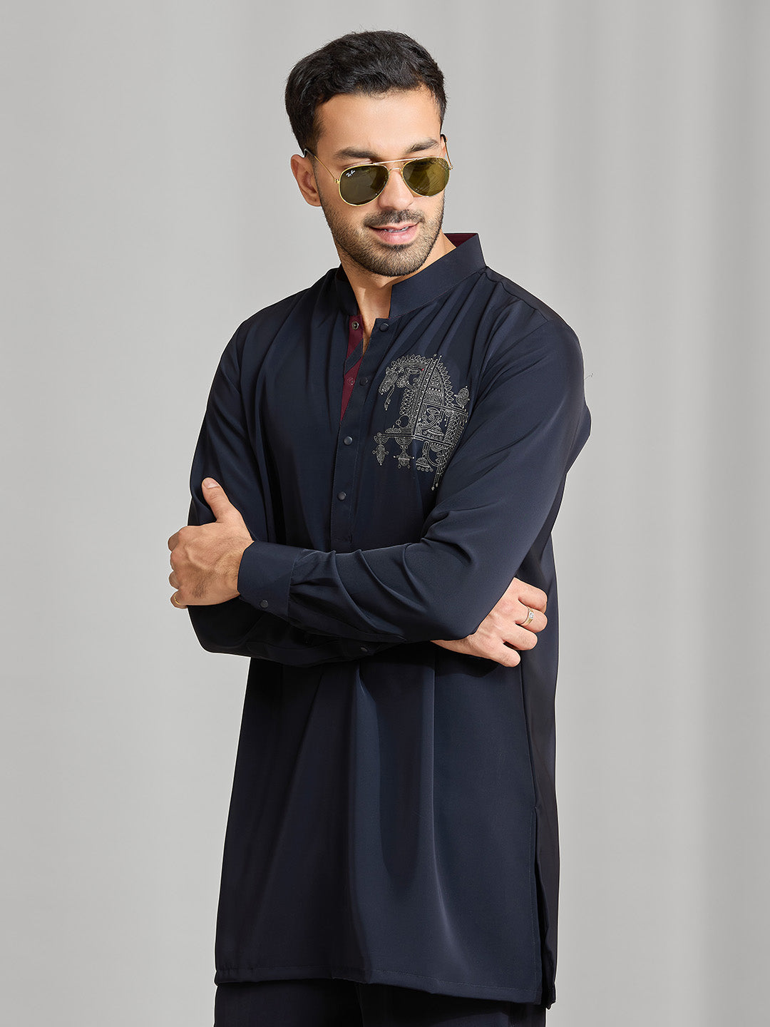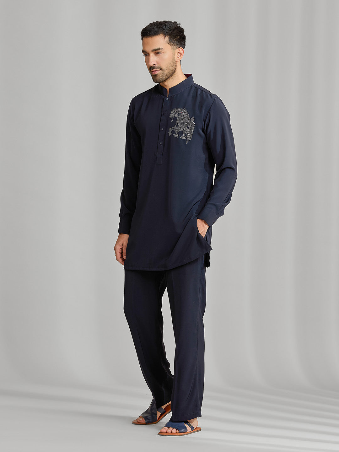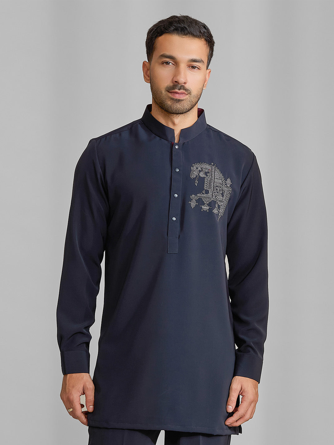 Black Silk Motif Kurta Set
