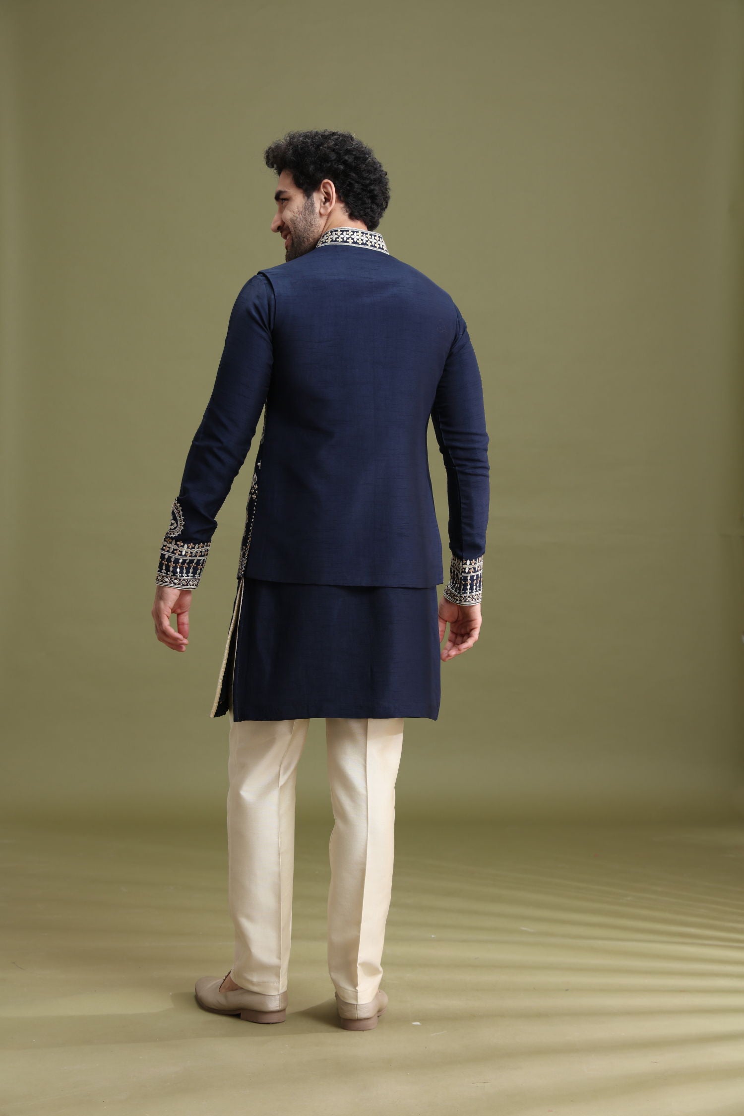 This bandi jacket set is suitable for wedding functions, festive celebrations, and occasions such as Diwali, Eid, Raksha Bandhan, and Lohri. It also works well as a groom mate outfit, offering a classic and elegant ethnic appearance.