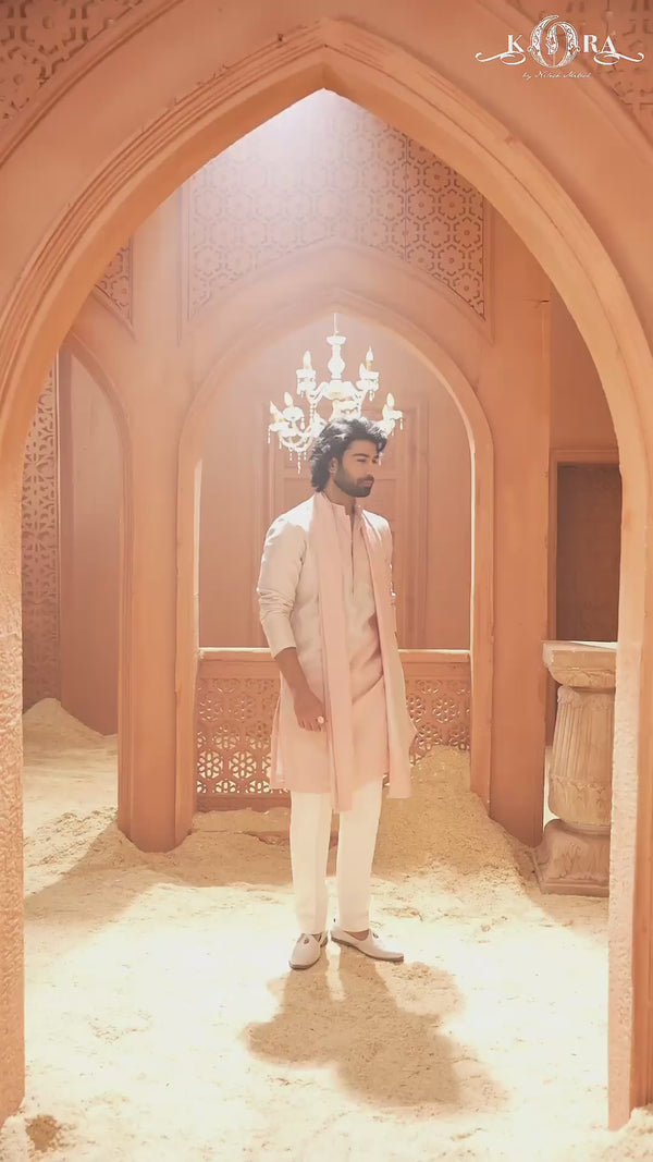 Step into subtle sophistication with this Peach Kurta Set, a perfect blend of elegance and comfort. Designed in a refreshing peach hue, it pairs beautifully with a white aligarhi, creating a timeless and graceful contrast.