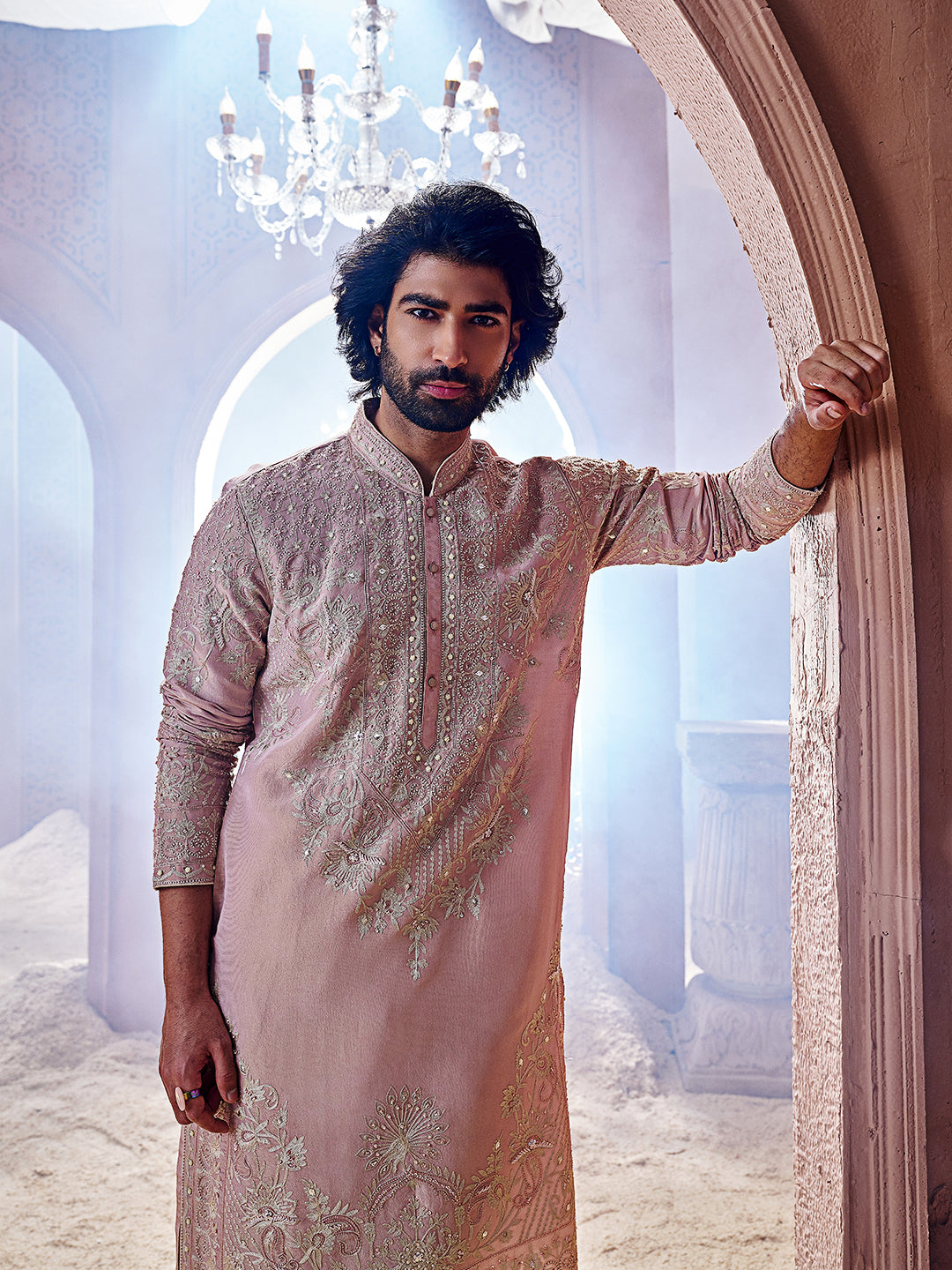 Elegant Peach Tissue Silk Kurta Set