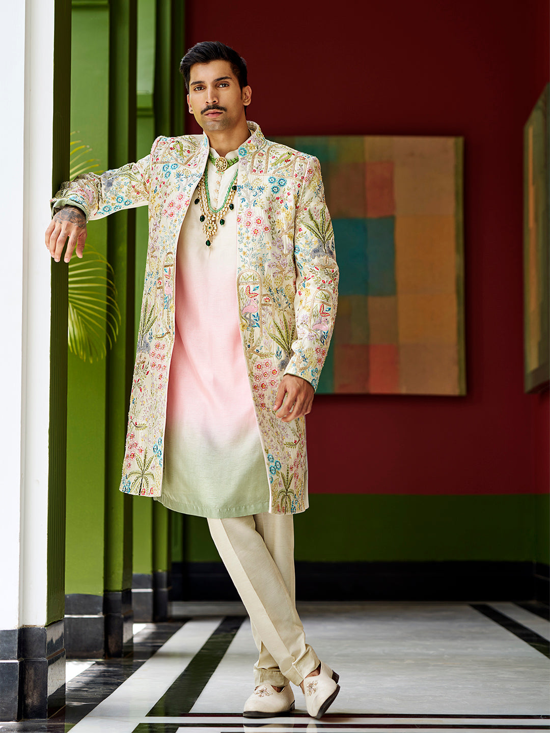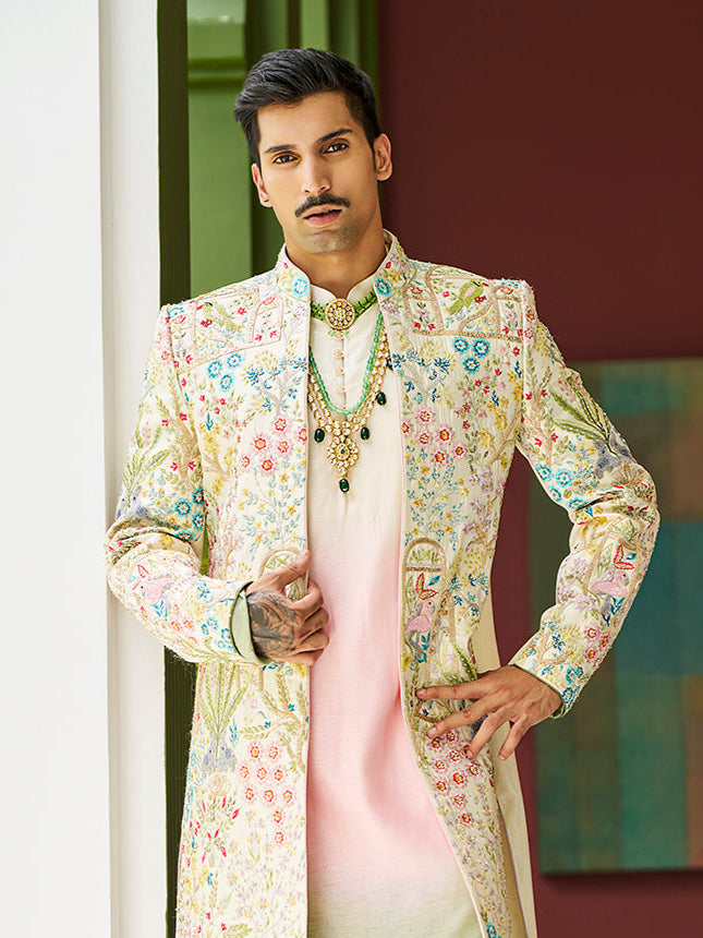 Graceful Cream Indowestern in Raw Silk – A Soothing Blend of Tradition and Elegance