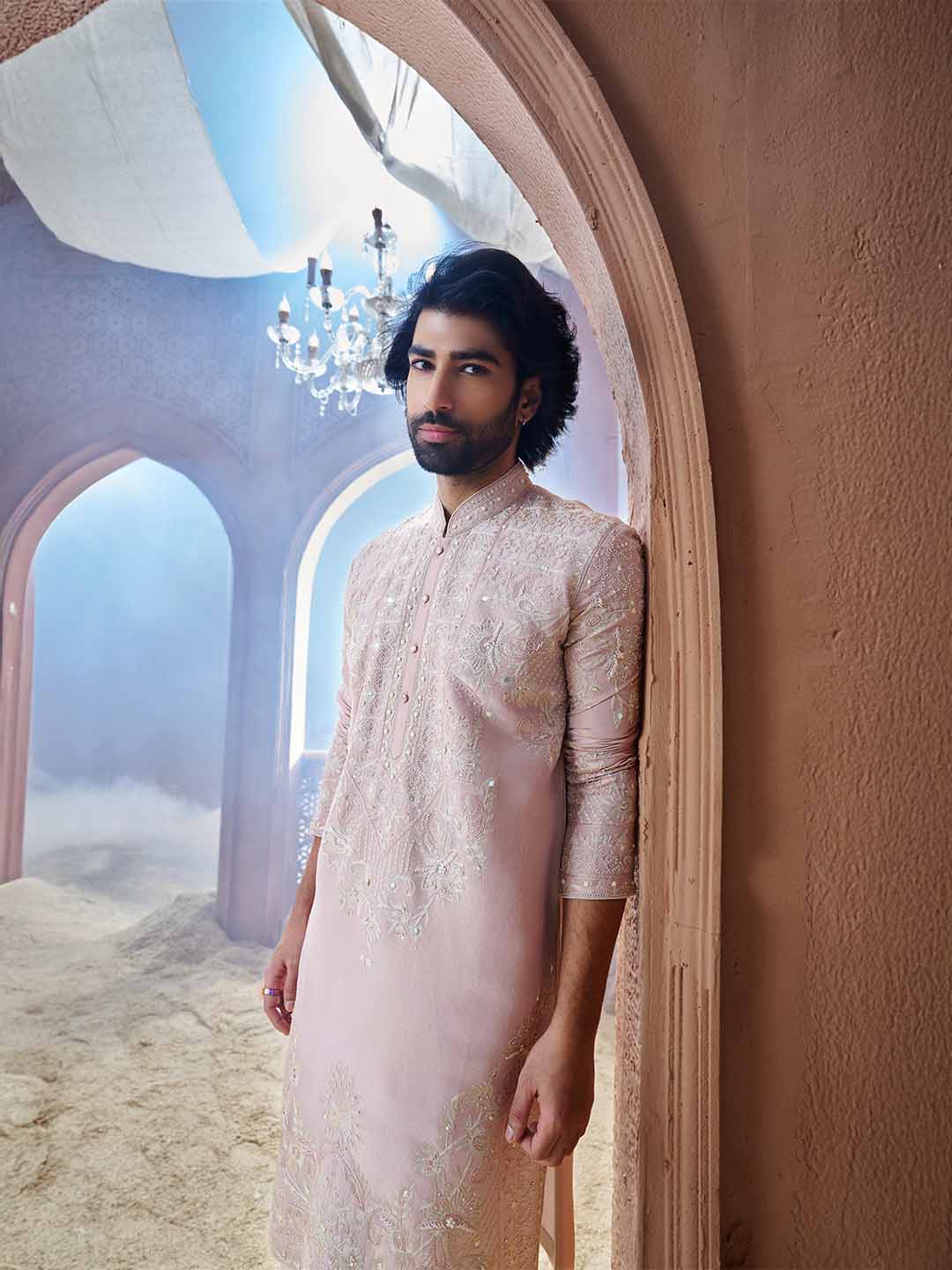 Elegant Peach Tissue Silk Kurta Set