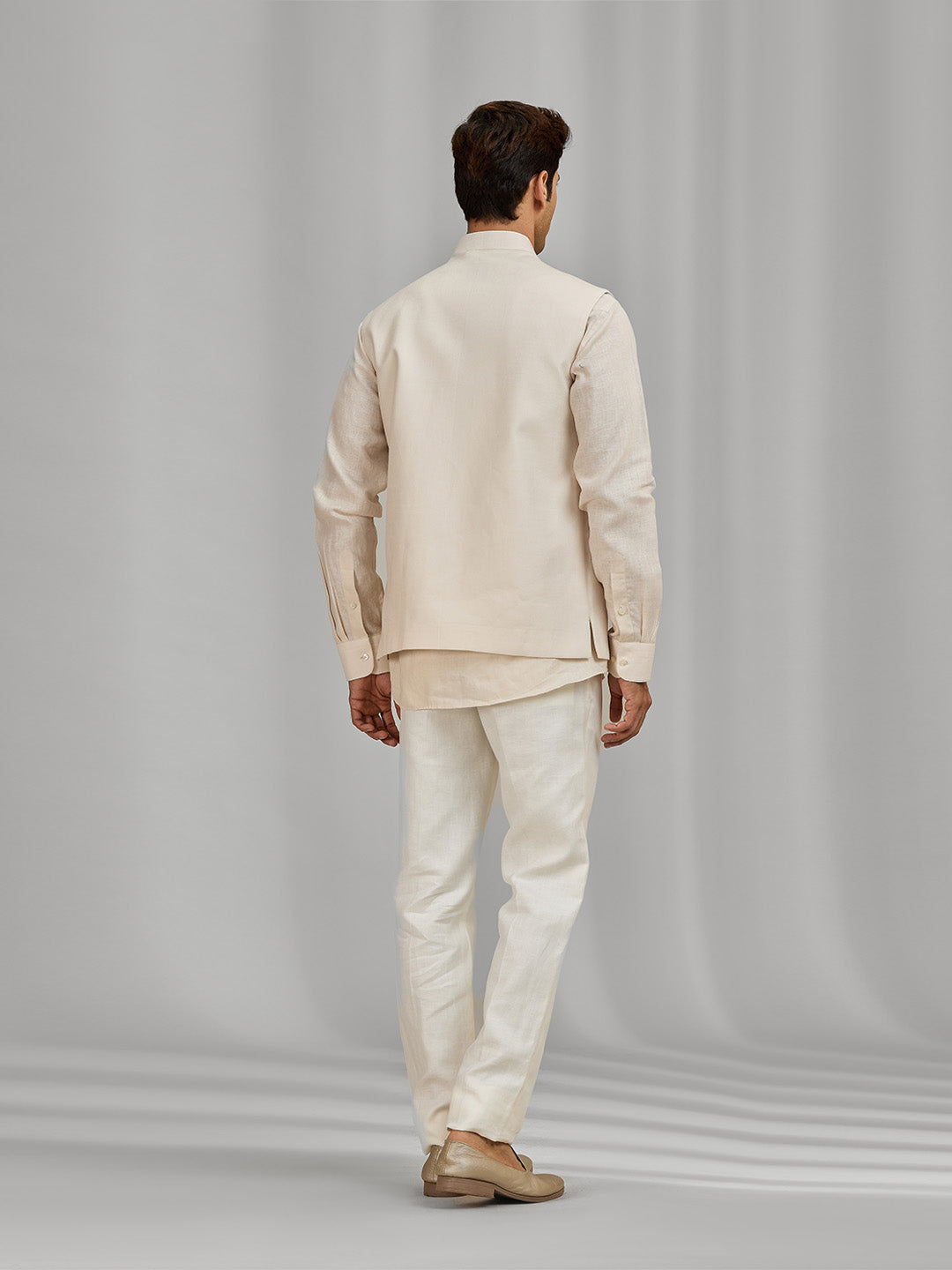 Men’s Beige Linen Bandi Shirt in Regular Fit
