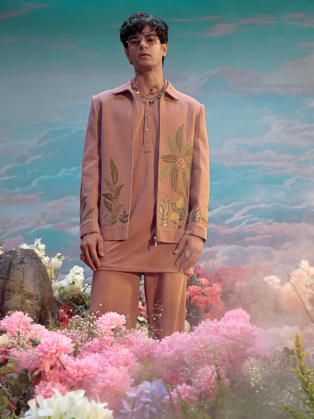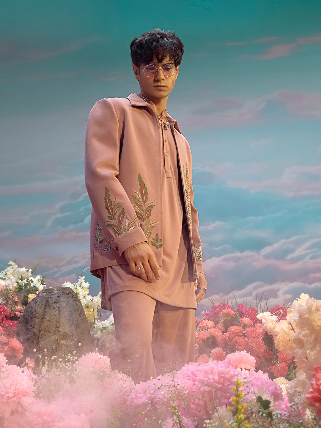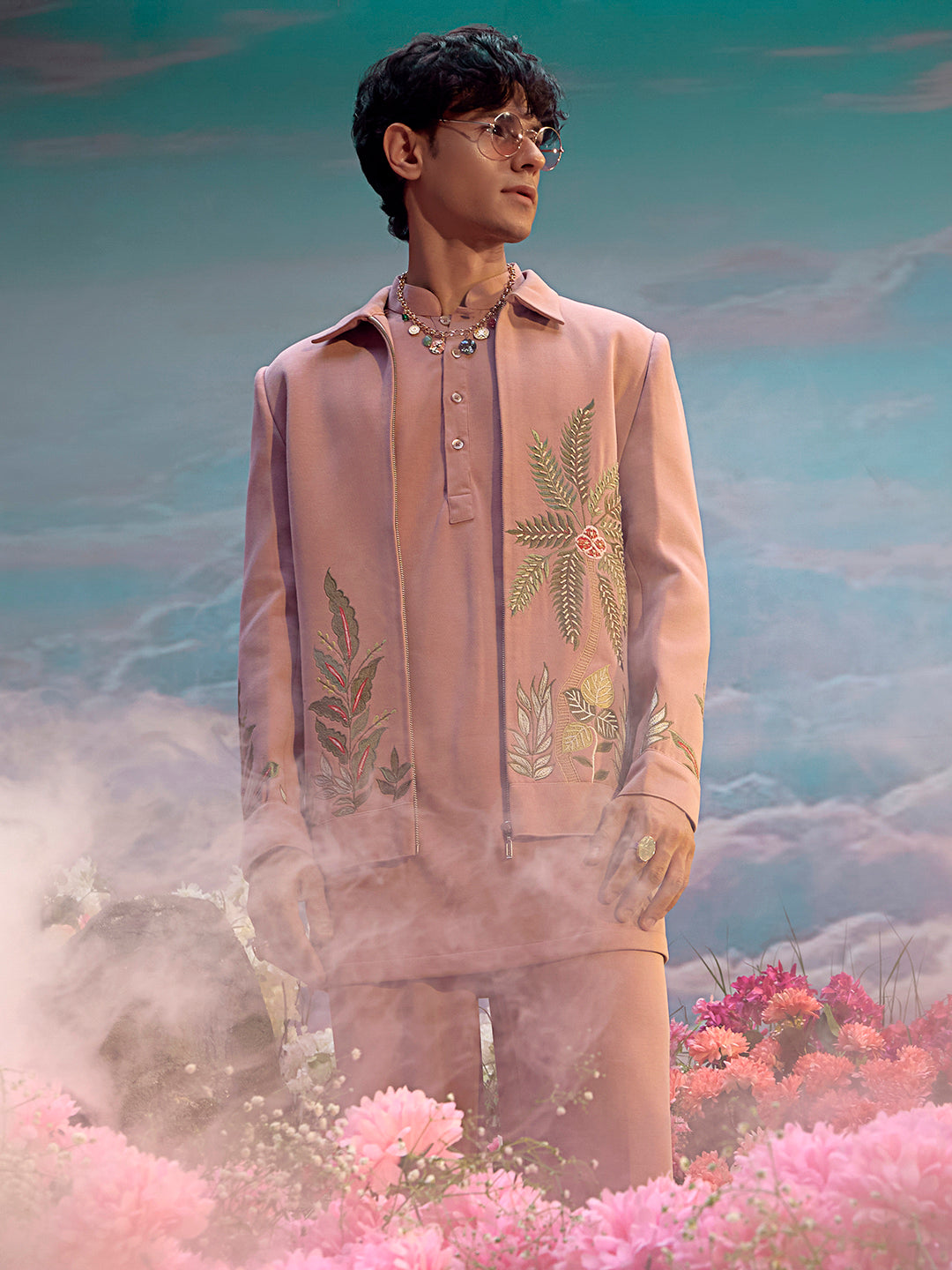 Mauve Hojri Silk Embroidered Jodhpuri Set