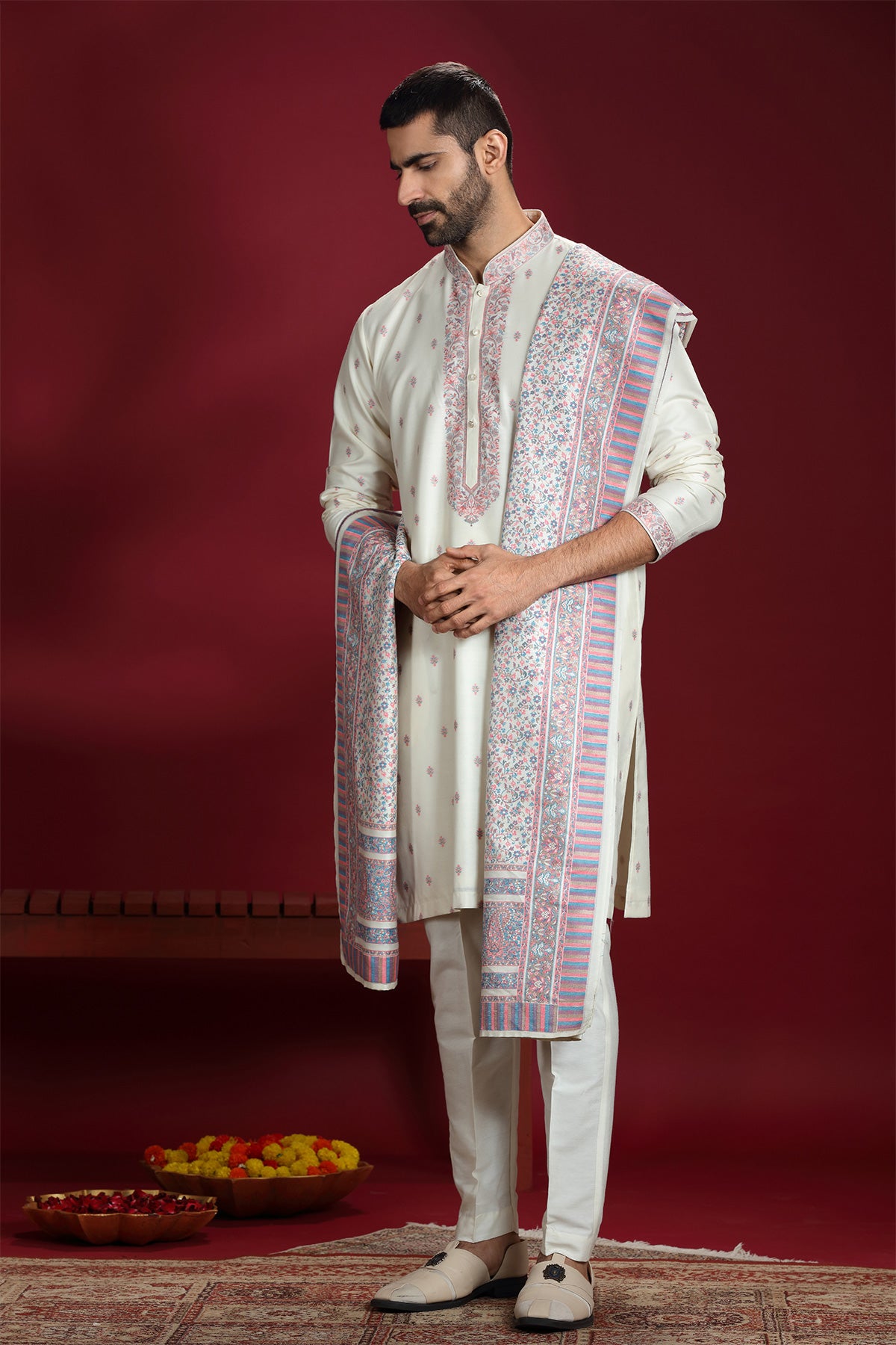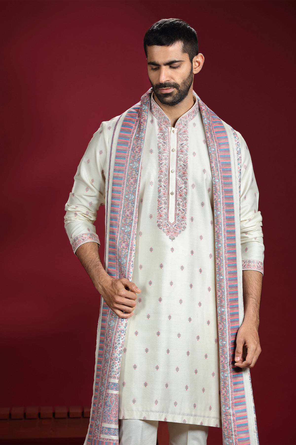 Off-White Banarasi Jacquard Silk Kurta Set with Dupatta