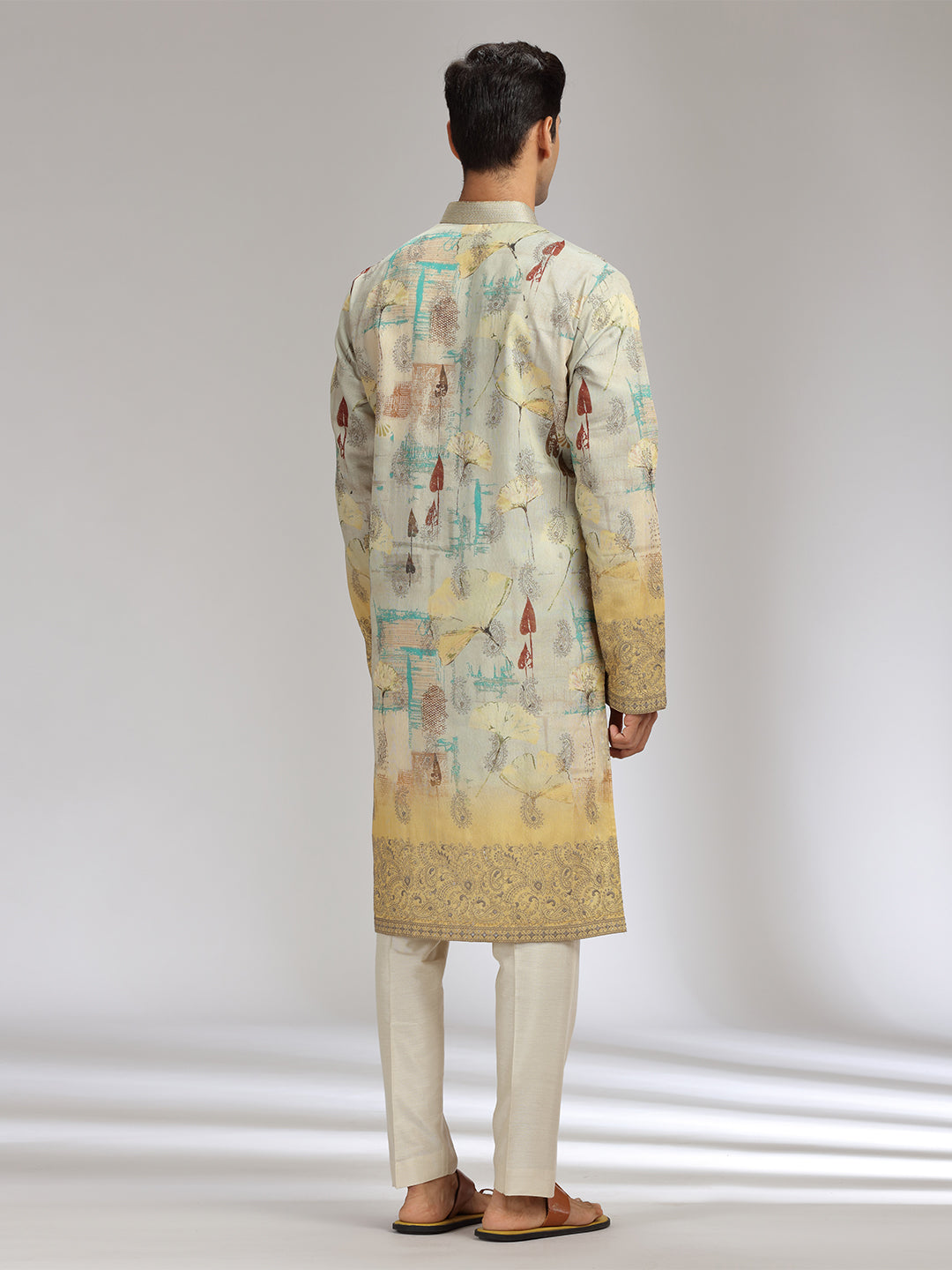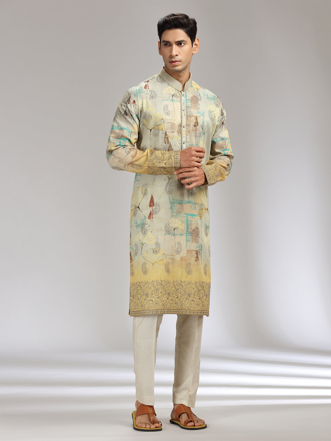 Pista Tissue Silk Embroidered & Printed Kurta Set