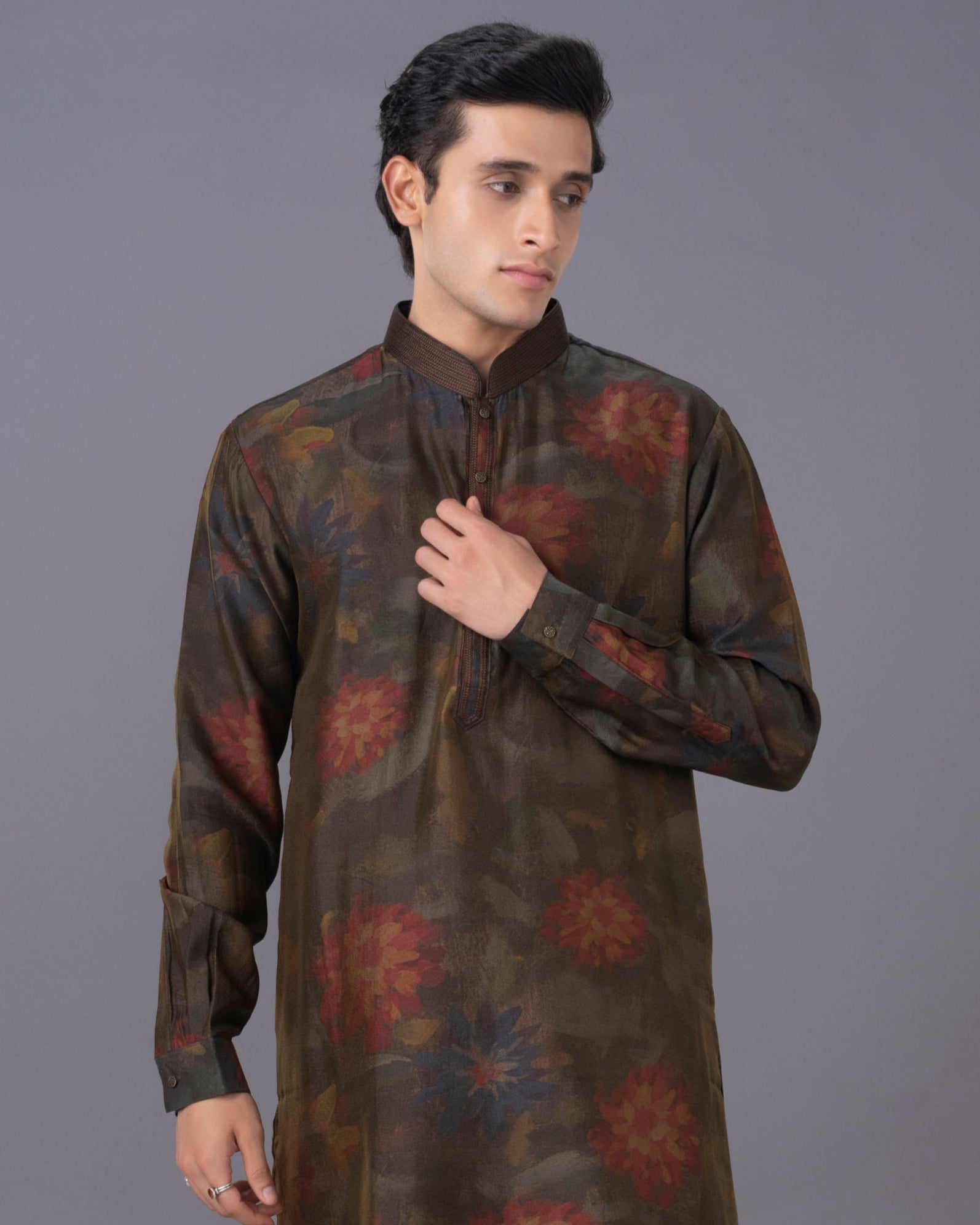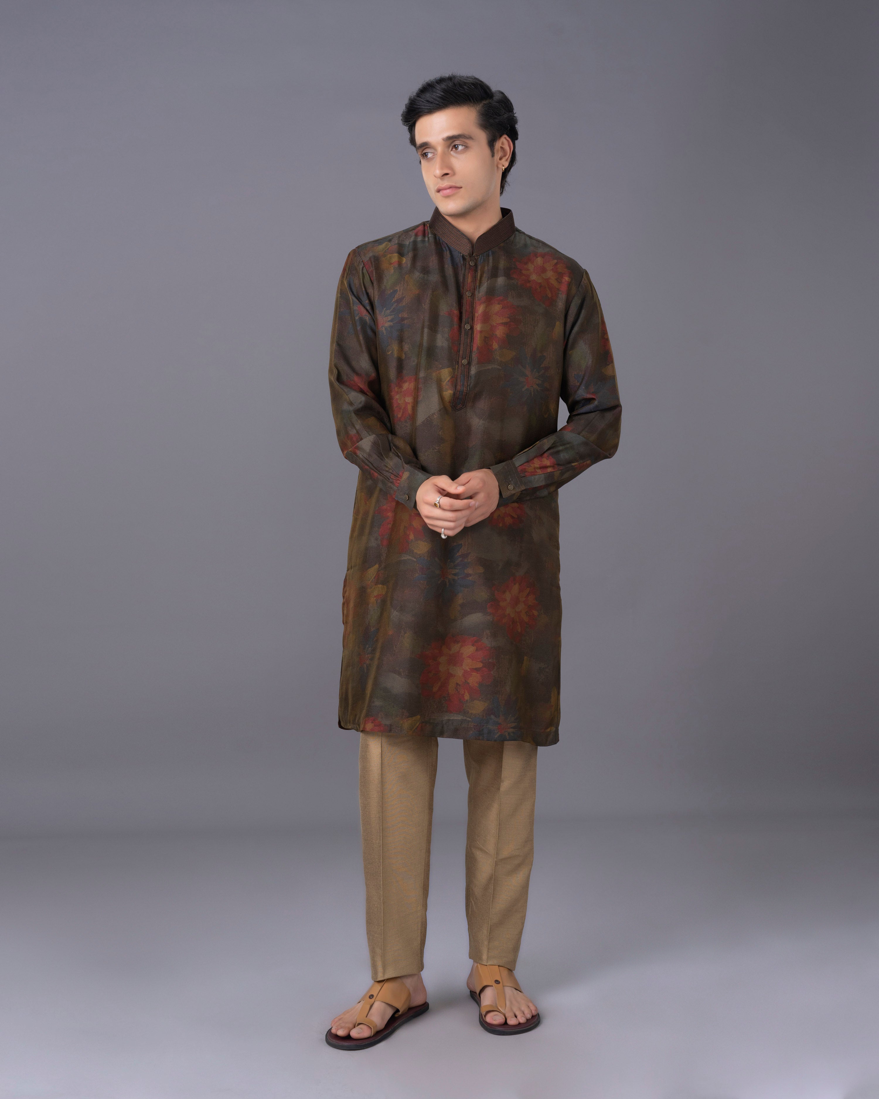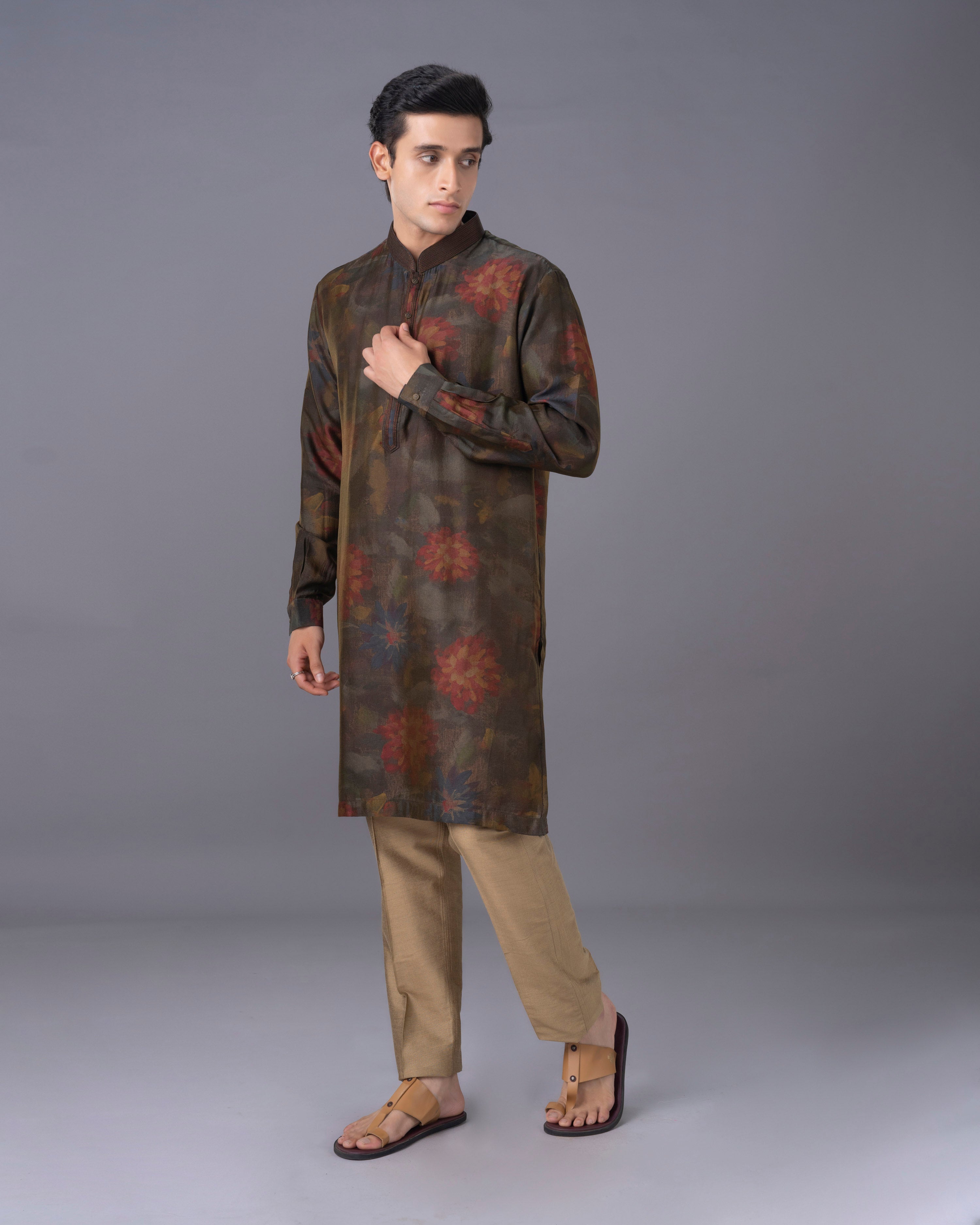 Make a refined statement with our Green Maroon Kurta Set. The striking combination of green and maroon hues is enhanced by a detailed print, all rendered on the unique and elegant munga silk fabric. This set includes a kurta and a perfectly tailored alighari bottom, designed for comfort without compromising on style. It's the perfect addition to your wardrobe for an effortlessly sophisticated and memorable look.
